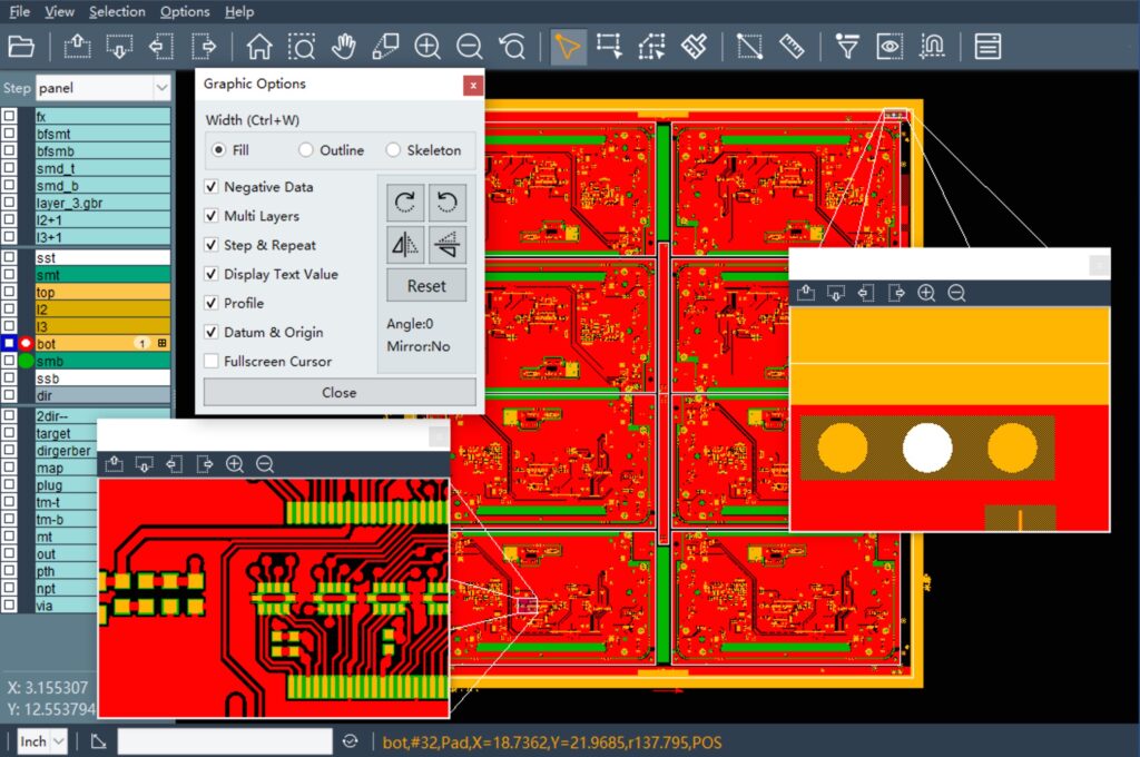 OpenCAM是由無錫東領智能科技股份有限公司開發的一款輕量級PCB CAM圖形查看器。基于C++開發,具有超高的圖形顯示效率,完全支持ODB++8.1格式。